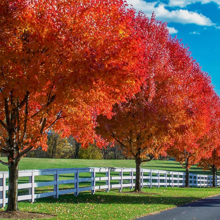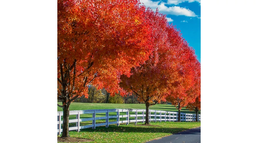 Az 'Autumn Blaze' juhar lombhullató, gyors növekedésű, kúpos koronájú, középmagas méretű fajta. Levele karéjos, világoszöld, őszi lombszíne a mély narancspirostól az intenzív vörösig változik. A vörös juhar és az ezüstjuhar spontán keresztezéséből keletkezett. Végleges magassága a talaj minőségétől függően 10-15 m.