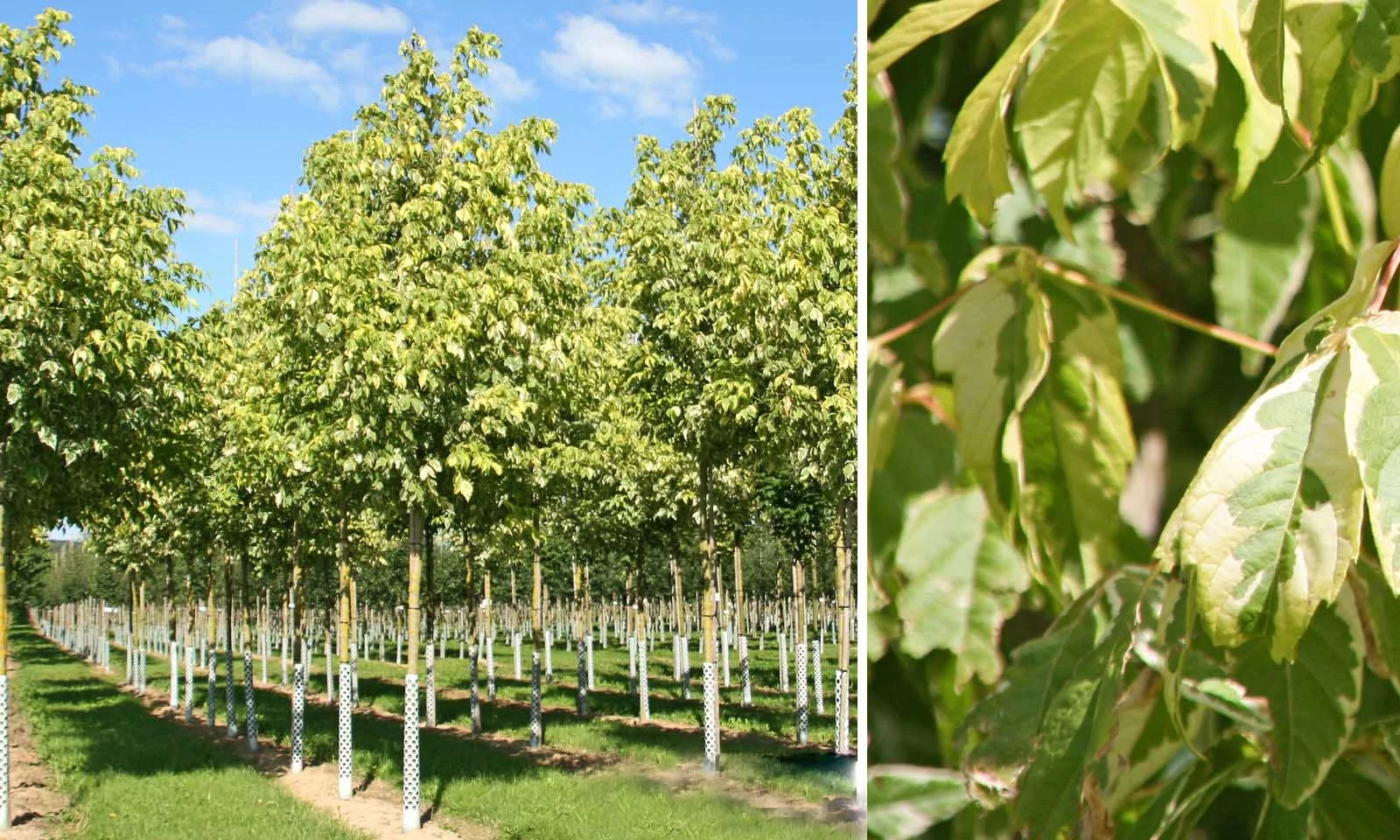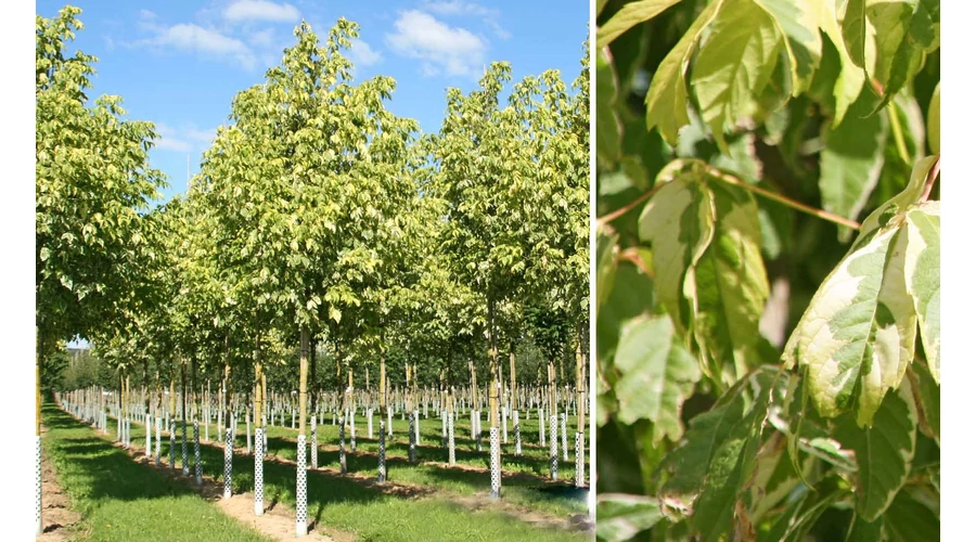 A 'Variegata' juhar lombhullató, közepes méretű fa. Levele zöld-fehér tarka színben pompázik. Ősszel sárga színű lombozatával díszít. Sárga, apró, virágai lombfakadáskor nyílnak, jelentéktelenek. Kétlaki növény. Szabálytalan gömb koronát nevel. Végleges magassága 4-5 m.