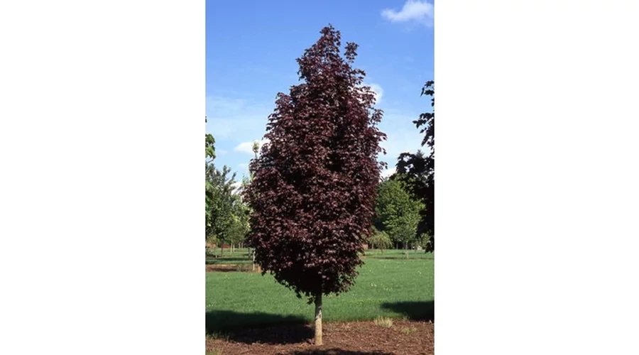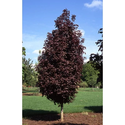 A 'Crimson Sentry' fajta az alapfajhoz képest fele akkorára nő (10-15 m), ágai felfelé törők, kezdetben sűrű, teljesen oszlopos növekedésű, később hosszúkás piramis alakú koronát nevel.