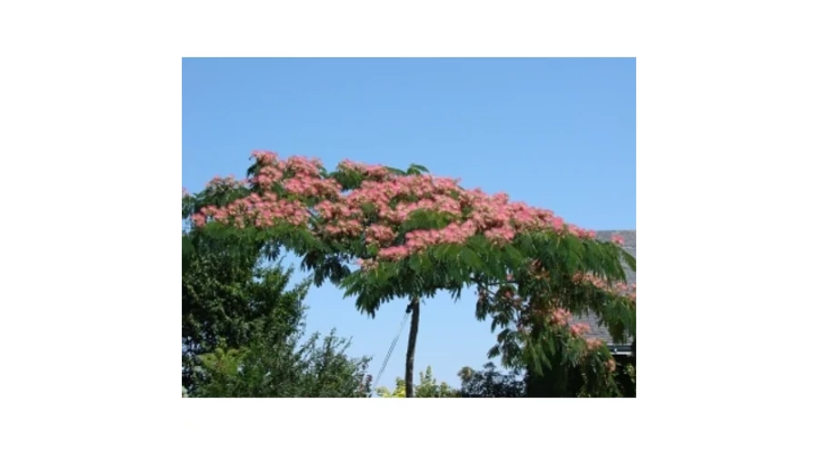 Az Albizia julibrissin Ázsiából származó díszfa, amely különleges megjelenésével azonnal mediterrán és egzotikus hangulatot kölcsönöz a kertnek. Virágai finom, selyemszerű szálakból állnak, amelyek rózsaszín árnyalatban pompáznak.