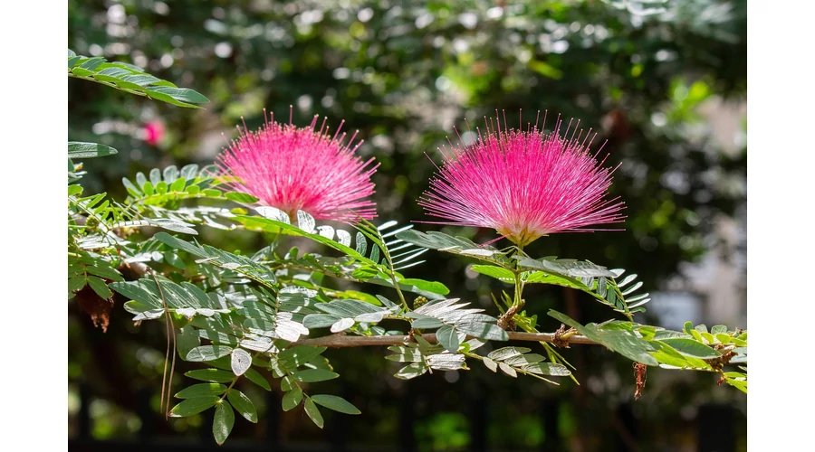 A selyemakác Irántól Japánig honosan megtalálható. Lomhullató, közepes méretű fa. Levele kétszeresen szárnyaltan összetett. Sötét rózsaszín porzószálakból álló borzas virágcsomói júniustól szeptemberig nyílnak. Már fiatal korában hozza különleges virágzatát. Lombozata és virágzata egzotikus látványt kölcsönöz. Koronaformája terebélyes, ernyős. Végmagassága 6-10 m.