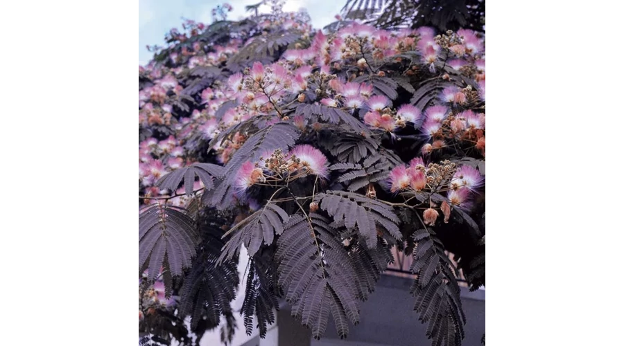 A selyemakác Irántól Japánig honosan megtalálható. A 'Summer Chocolate' fajta lomhullató, közepes méretű fa. Levele kétszeresen szárnyaltan összetett, csokoládébarna színű. Sötét rózsaszín porzószálakból álló borzas virágcsomói júniustól szeptemberig nyílnak. Lombozata és virágzata egzotikus látványt kölcsönöz. Koronaformája terebélyes, ernyős. Végmagassága 6-8 m.