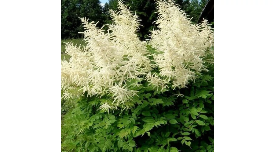 - Virág: Nyár közepén nyílnak laza, tollszerű bugavirágai. A női egyedek virágai hófehérek, a hímivarúaké sárgásfehér.