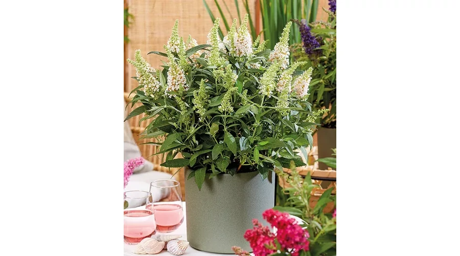 A 'Dreaming Whiter' (hivatalos fajtanév: 'Hinebud3') fajtát Peter Podaras a Hines Faiskolában nemesítette az Egyesült Államokban, Kaliforniában. A nemesítés 2010 körül történt, Európában 2013-tól vált elérhetővé. A fajta különlegessége az extrém törpe méret és a csüngő habitus. Ívesen lehajló, csüngő, vékony vesszejű, lombhullató cserje. Levelei szürkésszöldek, lándzsa alakúak, amelyek ezüstösen csillognak a napsütésben. Virágai hosszú, tömött bugákban nyílnak, színük fehér, aranysárga torokkal. A virágok enyhe, kellemes illatot árasztanak, és mágnesként vonzzák a pillangókat és a méheket.