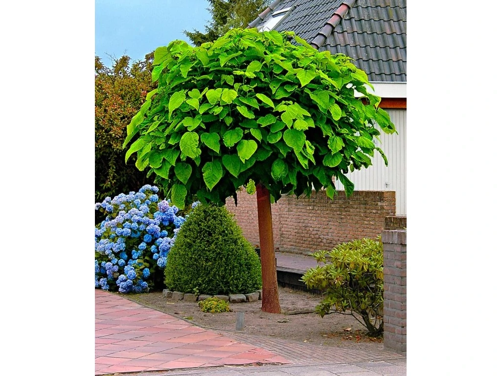 A Catalpa bungei alapfaj, azonban gyakran törzsre oltott változatként forgalmazzák, amely kompaktabb koronát és dekoratívabb megjelenést biztosít. Közepes termetű lombhullató fa, amely gyakran gömbszerű vagy lapított koronát nevel, különösen oltott formában. Levelei nagyok, szív alakúak, világoszöldek, puha tapintásúak, gyakran karéjos szélűek (kissé szögletesek). Későn fakad, de sűrű, ernyőszerű koronát nevel. Június-júliusban hozza gyönyörű, harang alakú virágait, amelyek fehérek vagy rózsaszínesek, belül pedig bíborvörös pöttyökkel díszítettek. Illatosak és vonzzák a méheket. Termése hosszú, vékony, szivarszerű tokterméseket érlel, amelyek télen is a fán maradnak.