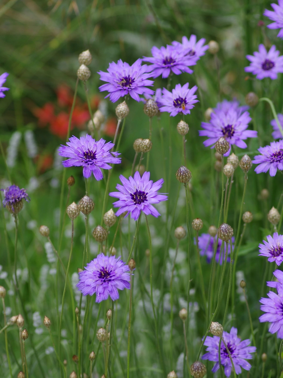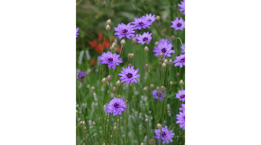 A mediterráneumból származó extrém módon szárazságtűrő zörgővirág 3-5 cm átmérőjű kék búzavirágszerű virágait nyár elejétől őszig hozza. Természetes kertekbe is jól illeszkedik.