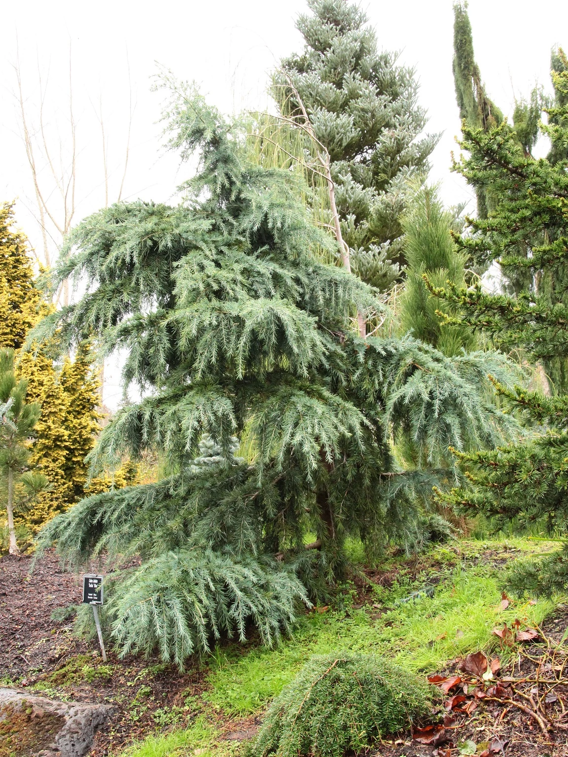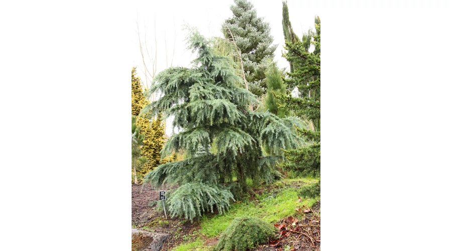 Fenntartási munkái: Ha azt szeretné, hogy magasabb legyen, a legfelső, legerősebb hajtást (vezérhajtást) folyamatosan karóhoz vagy rácshoz kell rögzíteni. Ha elengedi, onnantól a növény lefelé fog növekedni. Ne próbáljuk meg egyetlen mozdulattal függőlegesbe kényszeríteni a már elfásodott, görbe ágat, mert elpattanhat. Több ponton, fokozatosan húzzuk a támasztékhoz. A cédrusnak sok idő kell, mire a törzse elég erős lesz ahhoz, hogy megtartsa a nehéz, csüngő koronát. Általában 5-10 évig is szüksége lehet a karóra. Csak akkor vegyük ki, ha a törzs már kellően megvastagodott és nem hajlik el a szélben. Ha a törzs már elég magas, de szeretné, hogy a korona szélesebb legyen, néhány oldalágat is kiköthetünk vízszintesen "segédkarókhoz", így egy ernyőszerű, szélesebb alakzatot kapunk. Száraz időszakokban öntözést kíván, különösen az első években. Tápanyag-utánpótlása tavasszal komposzttal vagy lassú lebomlású tápanyaggal javasolt. A töve körül érdemes talajtakarót használni a kiszáradás megelőzésére.