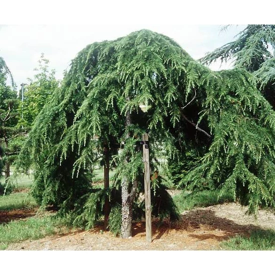 Fenntartási munkái: Ha azt szeretné, hogy magasabb legyen, a legfelső, legerősebb hajtást (vezérhajtást) folyamatosan karóhoz vagy rácshoz kell rögzíteni. Ha elengedi, onnantól a növény lefelé fog növekedni. Ne próbáljuk meg egyetlen mozdulattal függőlegesbe kényszeríteni a már elfásodott, görbe ágat, mert elpattanhat. Több ponton, fokozatosan húzzuk a támasztékhoz. A cédrusnak sok idő kell, mire a törzse elég erős lesz ahhoz, hogy megtartsa a nehéz, csüngő koronát. Általában 5-10 évig is szüksége lehet a karóra. Csak akkor vegyük ki, ha a törzs már kellően megvastagodott és nem hajlik el a szélben. Ha a törzs már elég magas, de szeretné, hogy a korona szélesebb legyen, néhány oldalágat is kiköthetünk vízszintesen "segédkarókhoz", így egy ernyőszerű, szélesebb alakzatot kapunk. Száraz időszakokban öntözést kíván, különösen az első években. Tápanyag-utánpótlása tavasszal komposzttal vagy lassú lebomlású tápanyaggal javasolt. A töve körül érdemes talajtakarót használni a kiszáradás megelőzésére.