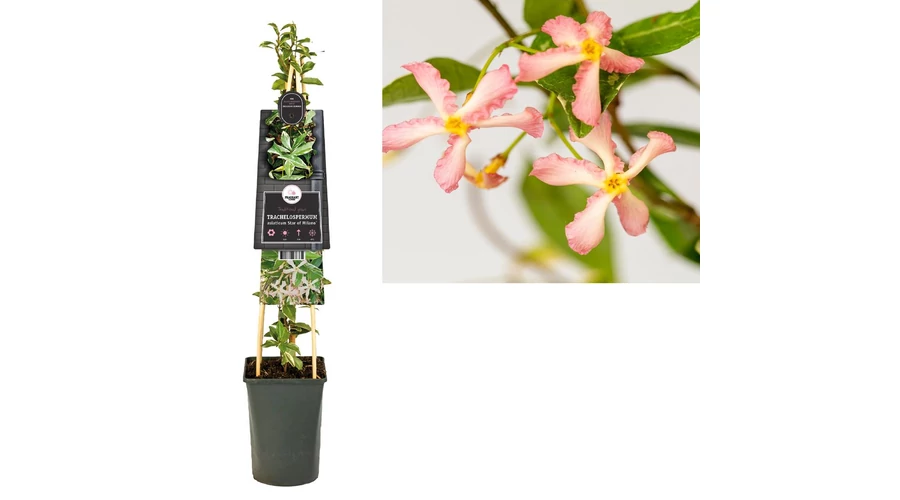 Illatos, fehér virágú csillagjázmin. Örökzöld, futónövényként vagy dézsában is nevelhető.