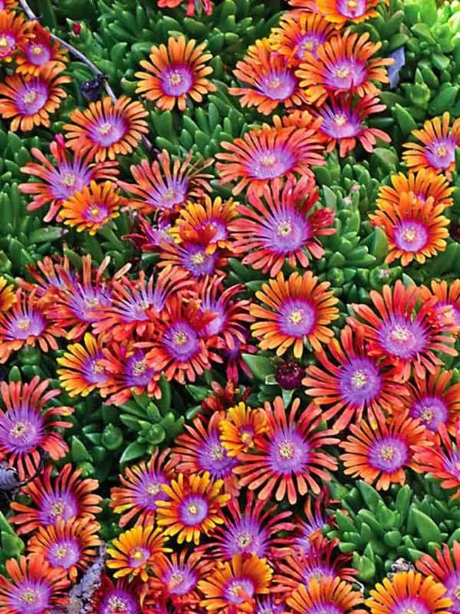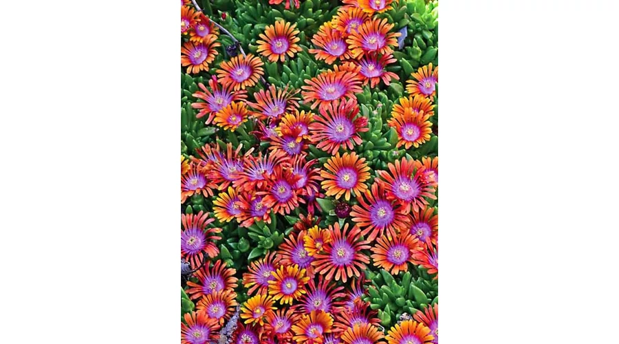 A Delosperma ‘Fire Spinner’ különleges virágai narancssárga és bíbor árnyalatokban játszanak, így valódi színrobbanást hoznak a kertbe. Kompakt növekedése miatt gyorsan sűrű talajtakarót képez.
