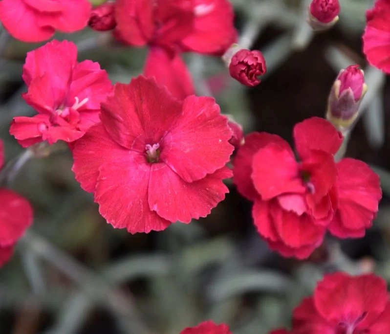 Kora nyára nyíló virágai illatosak és teljesen elborítják a növényt. A virágszirmok rojtos szélűek, a virágok teltek, általában 2-3 cm átmérőjűek. Virágaik vonzzák a méheket és pillangókat. Levelei fűszerűek, ezüstszürke színűek.