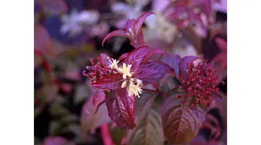 A 'Troja Black' fajtát Andreas Drath nemesítette a Troja faiskolában (Baumschule Troja, Barmstedt, Németország). A fajtát a 2000-es évek elején szelektálták, 2006. körül került kereskedelmi forgalomba. Közepes méretű, bokros növekedésű, sűrű ágrendszerű, rizómával terjedő, lombhullató cserje. Levelei keresztben átellenesek, oválisak vagy elliptikusak, a levélcsúcs kihegyezett, és kihajtáskor lilás-bronzos árnyalatú, nyáron sötétzölddé változik, ősszel ismét színt vált, lilás - narancsos - vöröses színekben pompázik, mialőtt lehullana. Kénsárga virágai trombita alakúak, kétajkúak. Virágát a beporzó rovarok szeretik.