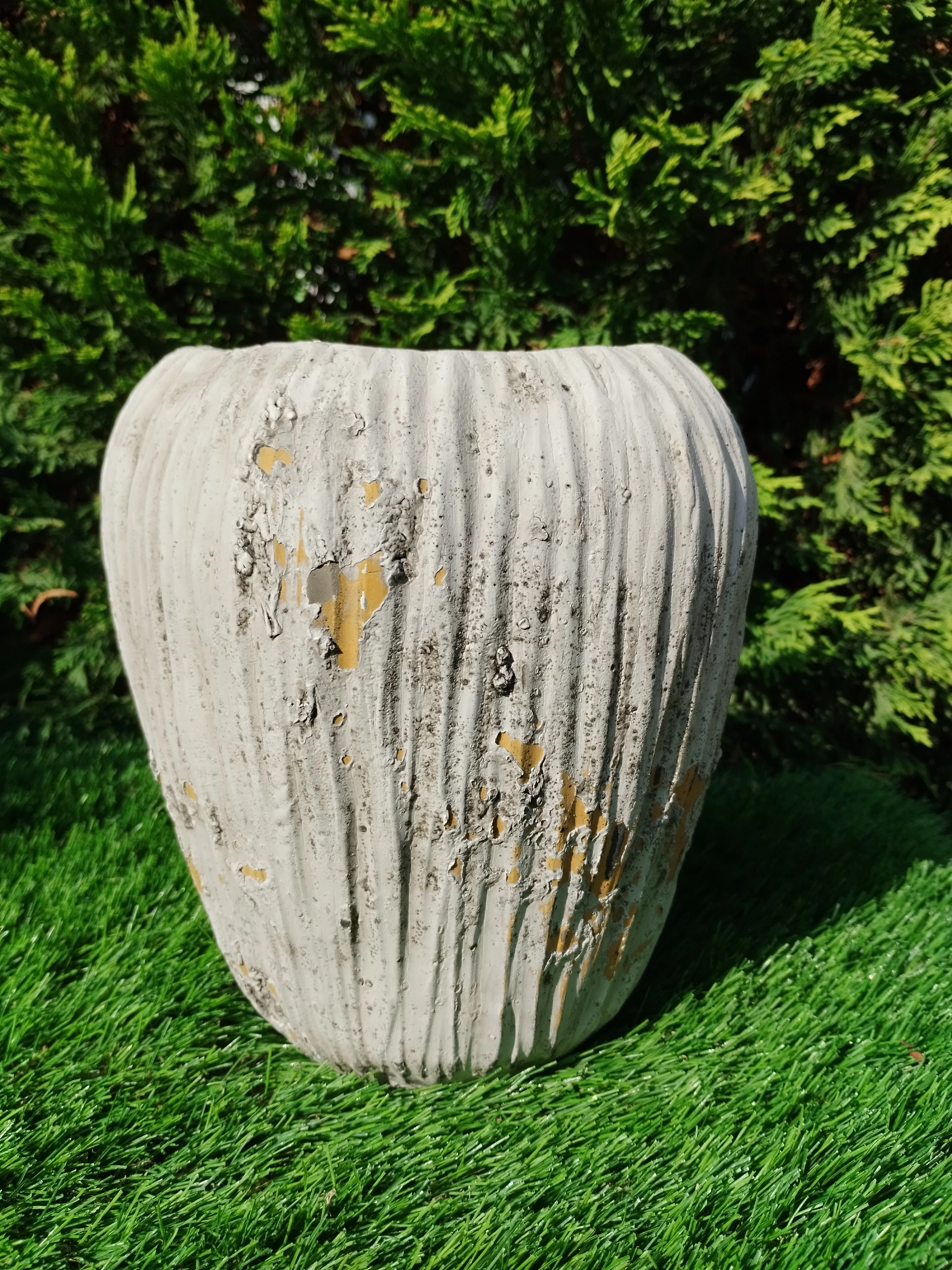 Fahatású öblös beton kaspó barna 18x18x20 cm