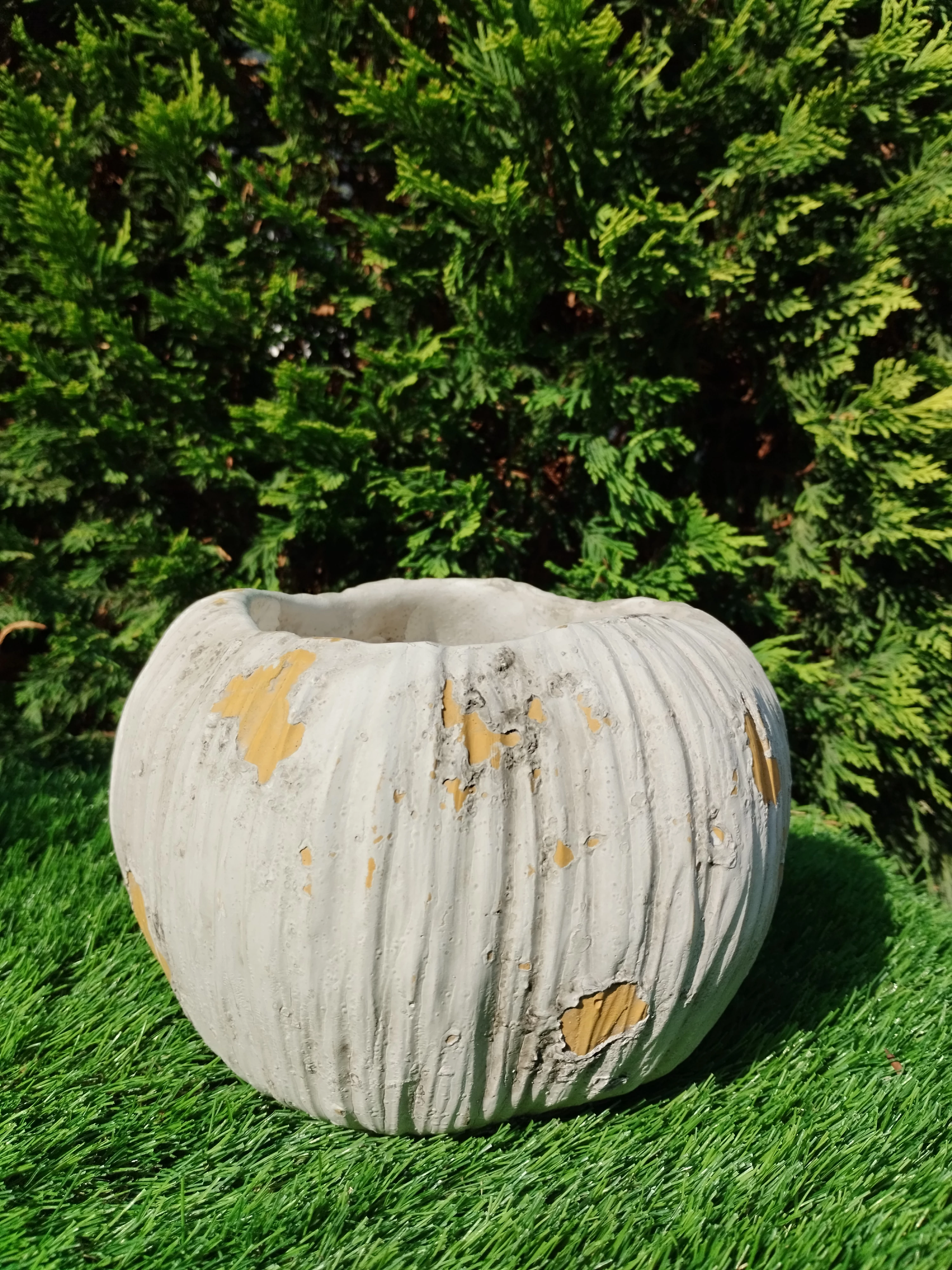 Fahatású öblös beton kaspó barna 19x14 cm