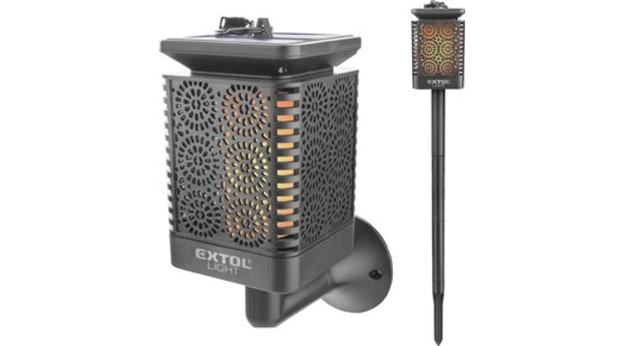 Éjszakai, kerti LED lámpa, láng hatású, napelem+szenzor, Ni-Mh akku, 600mAh, leszúrható+falra szerelhető, 66cm, IP44