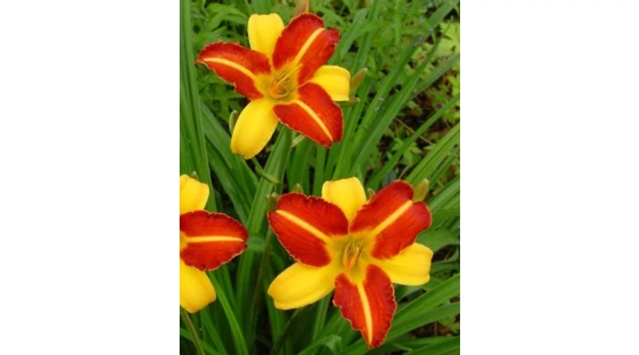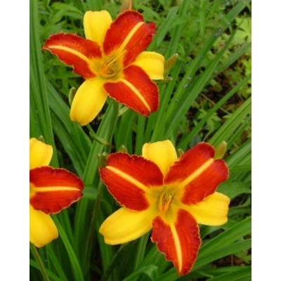 Virág: alsó három lepellevele aranysárga, a felső három rozsdás narancssárga, közepén feltűnő sárga csíkkal. Hosszan, júniustól augusztusig virágzik. Noha az egyes - tölcsér alakú - virágok mindössze egy napig nyílnak, az ágas legyezővirágzatokban folyamatosan új bimbók fejlődnek.