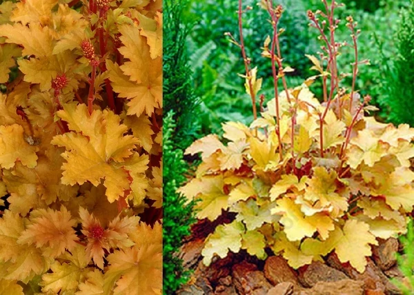 A Heuchera nemzetség, amelyet gyakran „coral bells” (korallharang) vagy „alum root” néven is emlegetnek, Észak-Amerika hegyvidéki és erdei területein honos. Mintegy 50 természetes fajuk ismert, amelyek jellemzően a Sziklás-hegység, az Appalache-hegység, valamint Kanada és az Egyesült Államok középnyugati és keleti államainak területén fordulnak elő. A nemzetség neve Johann Heinrich von Heucher (1677-1747), a Wittenbergi Egyetem orvosa, botanikusa és gyógynövény-szakértője után kapta a nevét, melyet Karl Linné adott, aki elsőként írta le e növényfajt 1738-ban. A Heuchera nemzetség egyes tagjai, főként a vadon élő alumgyökér (Heuchera americana), a népi gyógyászatban összehúzó hatásuk miatt voltak használatosak – külsőleg vérzéscsillapításra, sebek kezelésére. Bár a ‘Caramel’ nem kifejezetten gyógynövényfajta, a nemzetség örökségében ott rejlik a gyógyászati alkalmazás lehetősége. Az első jelentős hibrid heucherák 1980 körül kerültek kereskedelmi forgalomba. A hibridek ma már nagyon gyakoriak a termesztésben. A mai hibridek előállításához leggyakrabban használt növényfajok a H. sanguinea, a H. americana, a H. micrantha, a H. villosa és a H. cylindrica . A hibrid növények levelei széles színválasztékban kaphatók, beleértve a zöld, kékeszöld, ibolya, lila, bordó, bronz, ezüstfekete, narancssárga, sárga vagy piros különböző árnyalatait, de gyakran csíkos, foltos vagy márványos tarkasággal, amely néha merész kontrasztos ereket is tartalmaz. A hibrid növények virágszíneiben is nagy a választék.