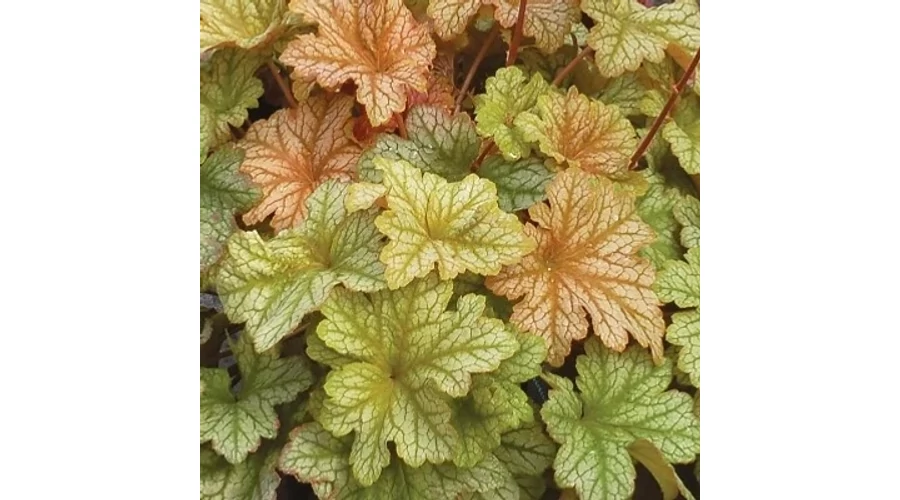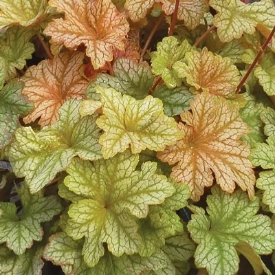 Heuchera 'Tpoaz Jazz', bokros növekedésű, félörökzöld évelő. Magassága és szélessége 20-30 cm.