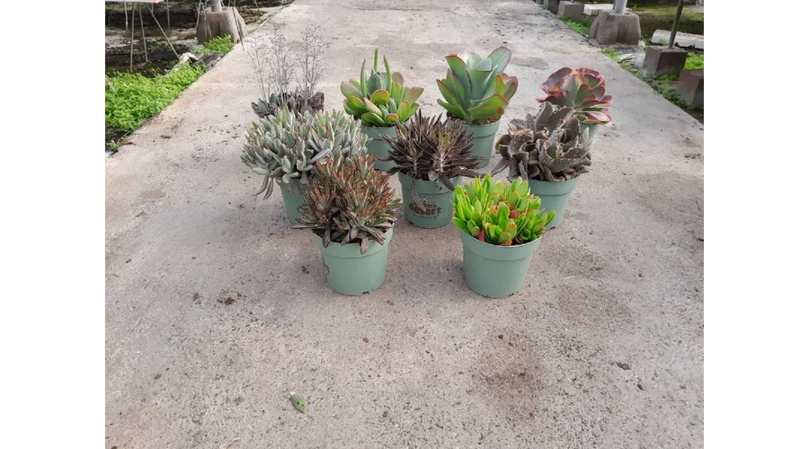 A Succulents Mix ‘Western Desert Dreams’ egy dekoratív szukkulens növényválogatás, amely több különböző fajta húsos levelű növényt tartalmaz. A különleges formájú és színű levelek modern, sivatagi hangulatot adnak a lakásnak vagy a terasznak.
