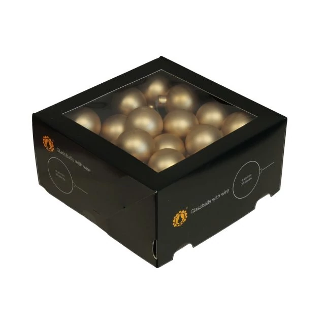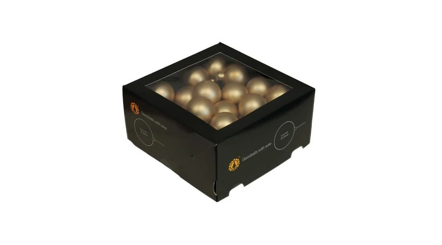 Gömb, betűzős üveg világos arany matt, 36 darabos készlet 4cm
