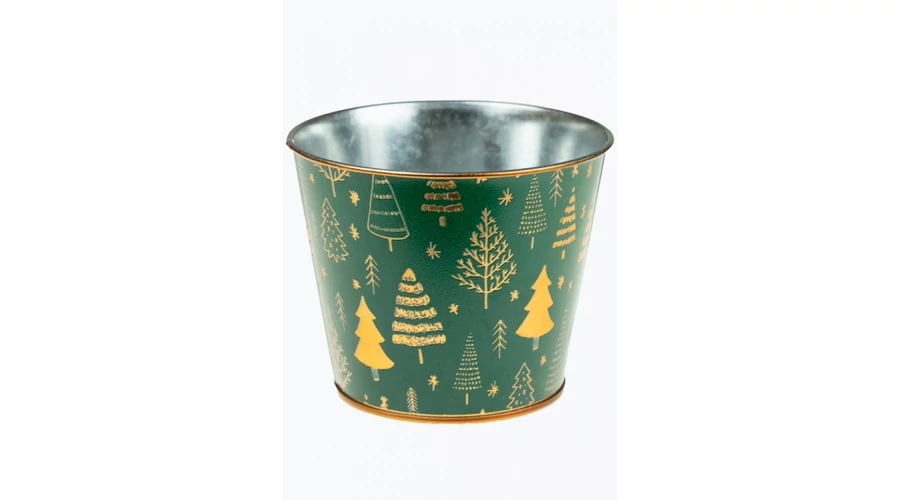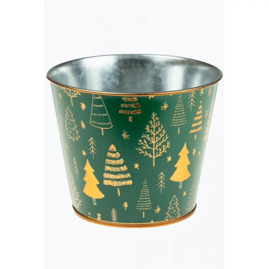 Kaspó fém 11.5/8.5*H9.5cm fenyő mintás zöld