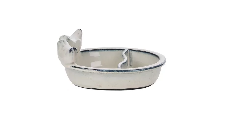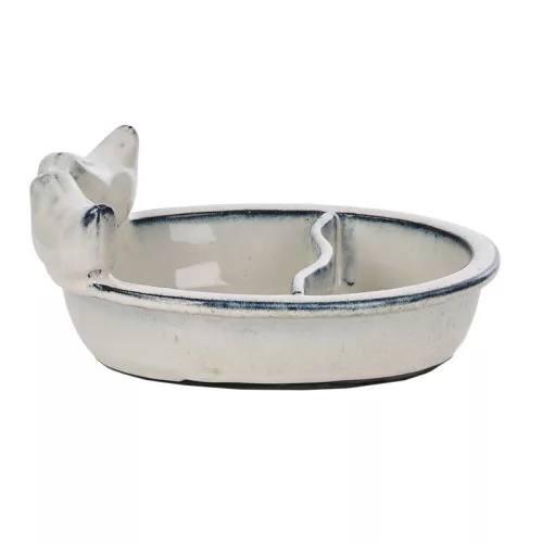 Kerámia madáretető- és itató madárdíszítéssel, fehér színben. Ha szeretnél kedvükben járni a madaraknak, remek választás ez a kerti kiegészítő! A két részre osztott kerámia tál egyszerre funkcionálhat madáretetőként, madáritatóként és madárfürdőként, mindamellett dekoratív tartozéka lehet minden madárbarát kertnek! Tartós, természetes anyagával, a csillogó fehér mázzal remekül mutat szabadtéren a növények közt. Tippünk: a utántöltés mellett ne feledkezz meg a madáretető rendszeres tisztításáról sem! Az etető tisztítása különösen nedves időben fontos, így megelőzhető a betegségek terjedése a madarak között. Ha szívesen hallgatod a madárcsicsergést, és szeretnéd őket megfigyelni otthonod közelében, remek választás lesz ez a többfunkciós kerti madáretető! Hideg időjárás esetén nem ajánlott a terméket a szabadban hagyni, mivel a fagy okozhat sérülést vagy repedést a kerámia felületén.