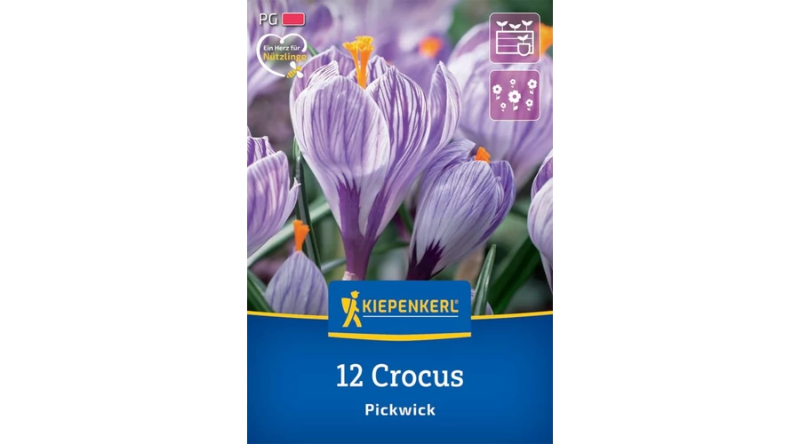 Lila mintázatával a nagy virágú 'Pickwick' krókusz igazi tekintetgyönyörködtető az ágyásokban és konténerekben. A szép minta lila háttér előtt jelenik meg. A méhek és a dongók is élvezik ennek a fajtának a virágait, mivel értékes táplálékot biztosít számukra a márciustól áprilisig tartó virágzási időszakban. A