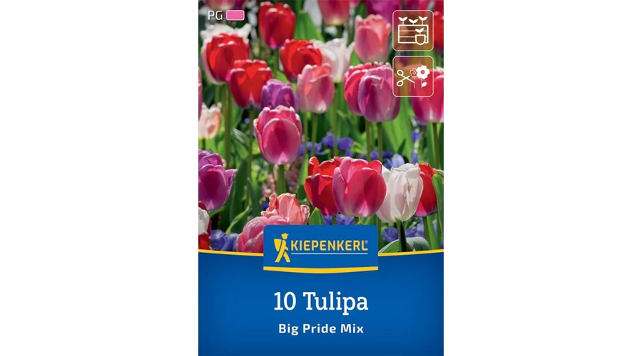 A Darwin Hybrid Tulip 'Big Pride' keverékkel lenyűgöző színválasztékban gyönyörködhet kertjében vagy vágott virágként otthonában. A szirmok színe a rózsaszíntől az ibolyaszínen át a barackig terjed. A tulipánok 50 cm magasra nőnek, és erős száraik vannak, így vágott virágként kellő stabilitást biztosítanak számukra.