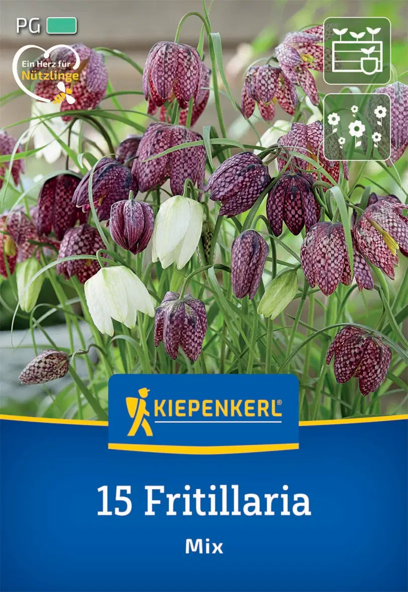 A Kiepenkerl mocsári kockásliliom (Fritillaria meleagris) sakktáblás virágkeveréke igazi különlegességet kínál kertjében, amely a maga egyedi módján gyönyörű. A sokszínű harangvirágokat sakktáblaszerű minták díszítik, ez adja ezeknek a virágoknak a nevüket.