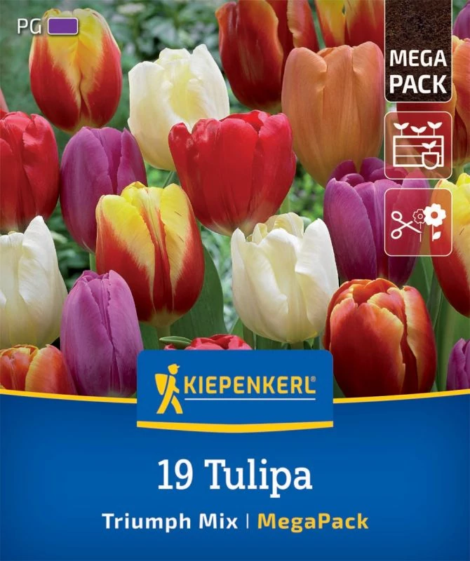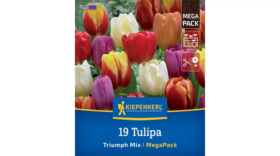 A 'Triumph Tulip Mix' mega csomag összesen 19 hagymát tartalmaz, és csodálatos kiegészítője lehet kertjének. Ez a tulipánkeverék a színek sokféleségével tűnik ki. Élvezheti az egyszínű tulipánokat sárga és sötétvörös színben, vagy választhat a kétszínű tulipánokat, amelyek fehér-rózsaszínben vagy sárgásvörösben ragyognak.