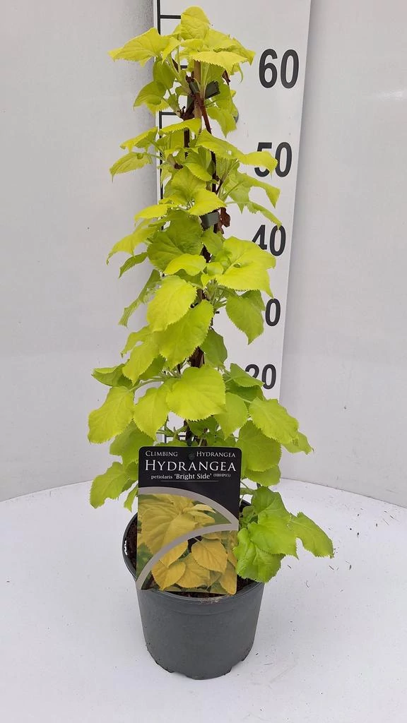 A Hydrangea ‘Bright Side’ egy kapaszkodó, lombhullató kúszócserje, amely tapadó gyökereivel önállóan képes falakra és egyéb felületekre felkúszni. Növekedése kezdetben lassú, de megerősödve stabil, hosszú életű dísznövénnyé válik.