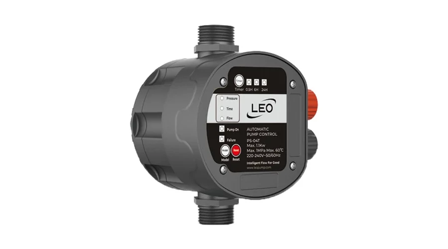 A LEO PS 04T egy kompakt és hatékony szivattyúvezérlő, amely kiválóan alkalmas háztartási és kisebb vízellátó rendszerek automatizálására. A készülék folyamatosan figyeli a vízáramlást és a rendszer nyomását, és ennek megfelelően vezérli a szivattyút.