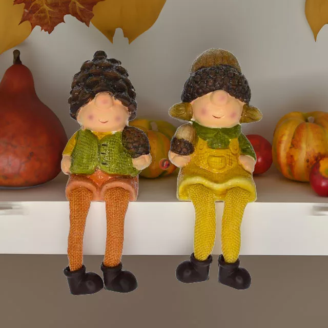 Lógólábú fiú, lány tobozzal lógólábú kerámia 7x7x20cm sárga, narancs 2 féle