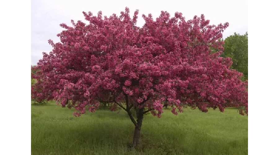 A Malus Royalty / Vöröslevelű díszalma, 6-8 méter magas, lassú növekedésű lombhullató kis fa. Májusban nyíló virágai sötét borvörösek. Termése vörös színű. Levele fényes, barnásvörös, tojás alakú.