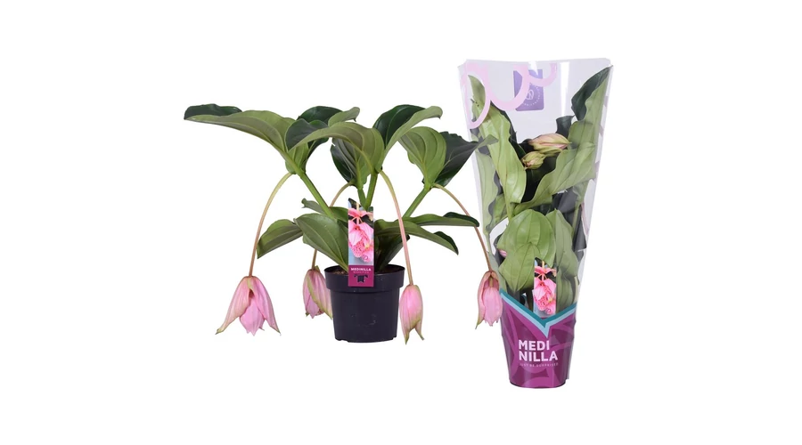 A Medinilla magnifica egy lenyűgöző, trópusi szobanövény, amely elegáns, lecsüngő rózsaszín virágzatairól ismert.