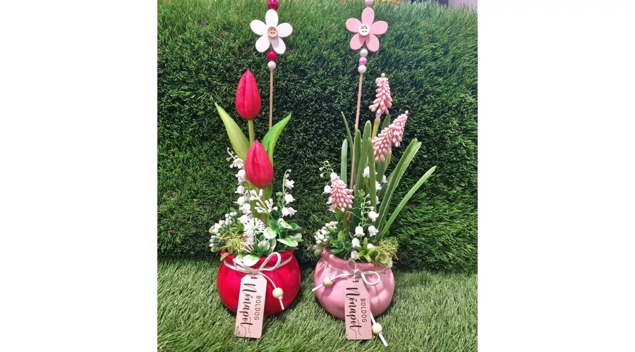 Tavaszi tartós selyemvirágdísz 20cm magas