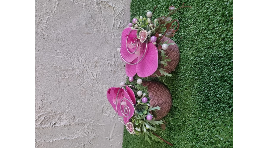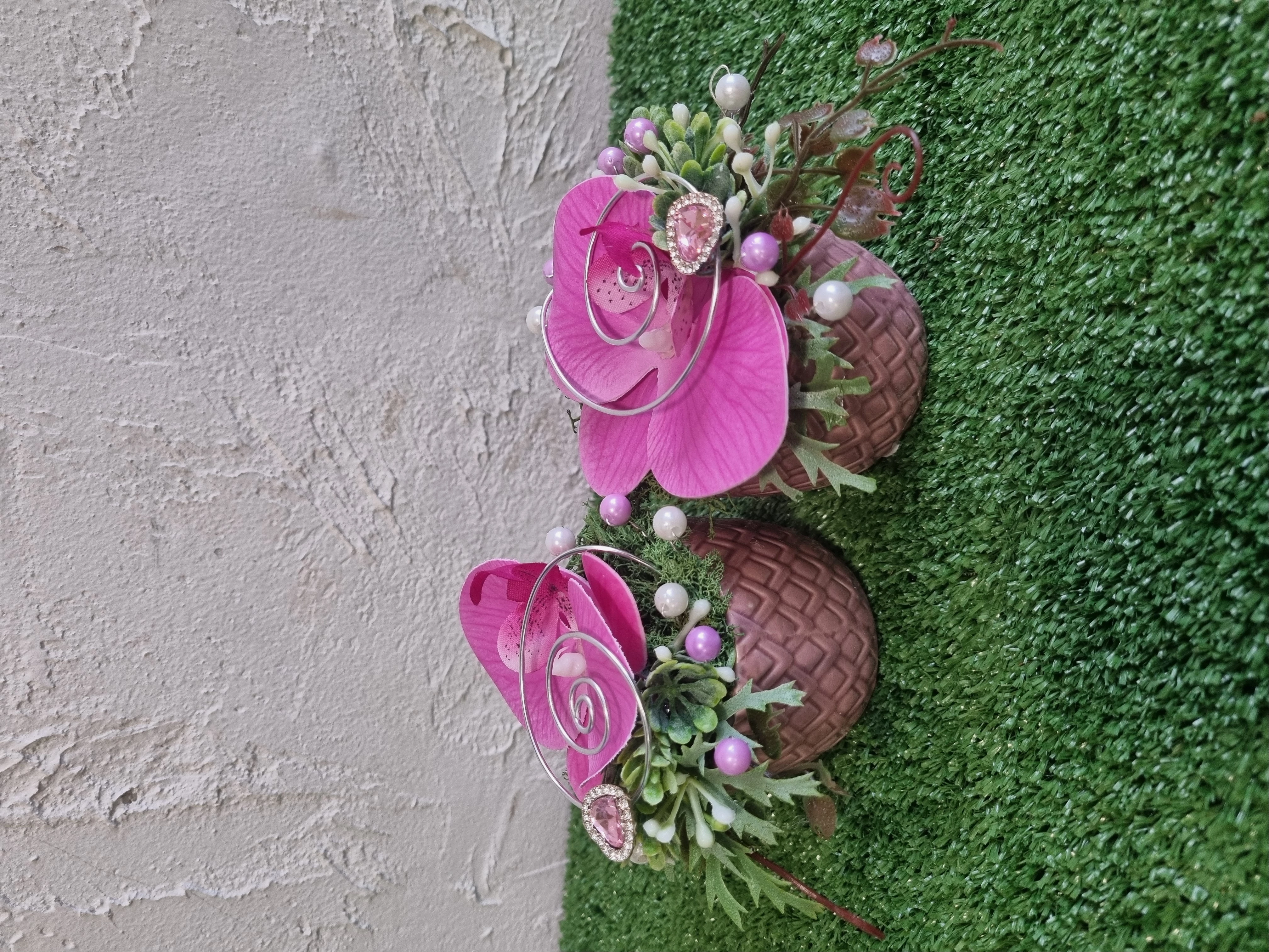 Ezüst kaspóban szörme díszekkel szörmés manó magassága 27cm szélessége 11cm