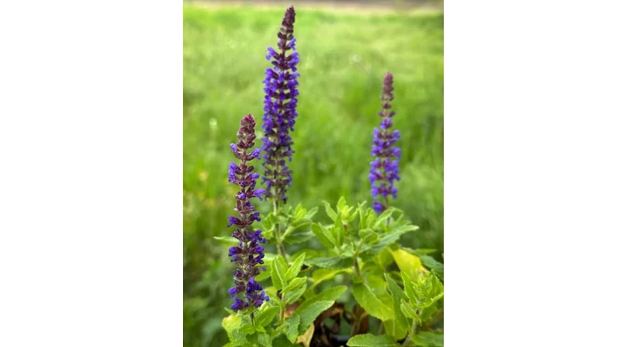 Virág: liláskék, ajakosak, végálló füzérszerű álörvökbe tömörülnek. VI-VIII hónapban virágzik. A virágzati szárak mereven felállóak, sötétrózsaszínűek, ami tovább fokozza a sötét színhatást.