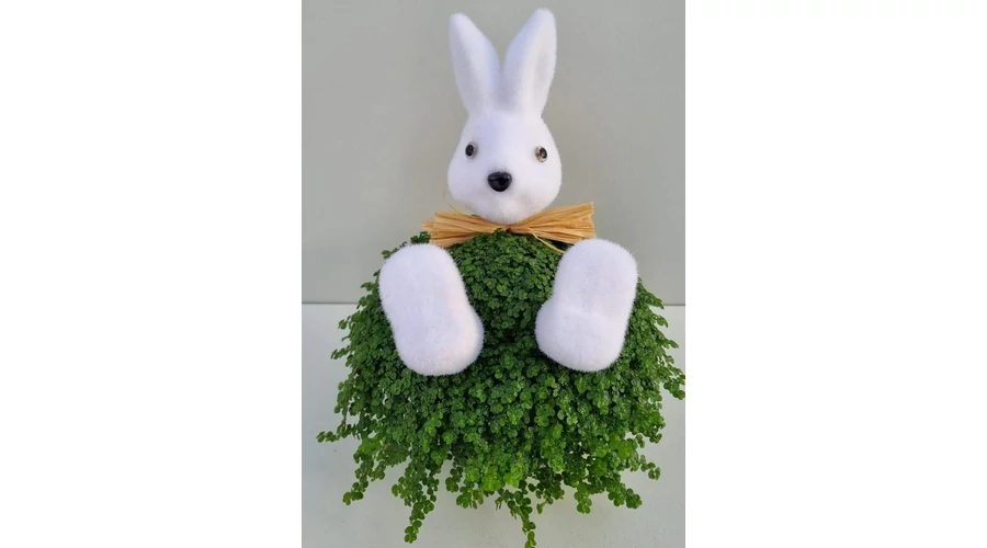 A Soleirolia Bunny Bow White egy különleges megjelenésű, kompakt növekedésű dísznövény, amely friss zöld lombjával és egyedi, nyuszis masnis dekorációjával azonnal ünnepi hangulatot teremt. Ez a kis méretű, mégis látványos növény ideális választás húsvéti dekorációként vagy kedves, figyelmes ajándékként.