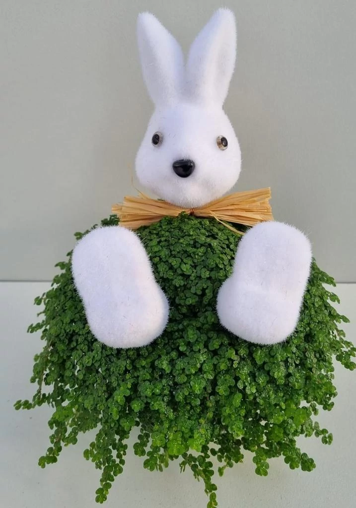 A Soleirolia finom, sűrű levélzetével puha, párnaszerű hatást kelt, amely természetes és harmonikus megjelenést biztosít bármilyen enteriőrben. A Bunny Bow White változat különlegessége a fehér masnival és nyuszis motívummal ellátott díszítés, amely játékos és ünnepi karaktert ad a növénynek.