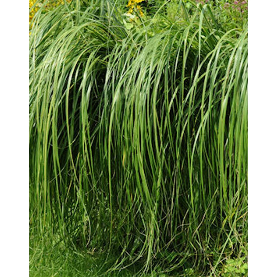 Nagytermetű, kissé terjedő tövű díszfű, leomló keskeny zöld levelei sárgával szegélyezettek.