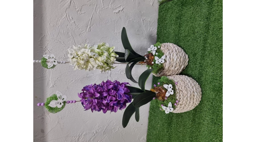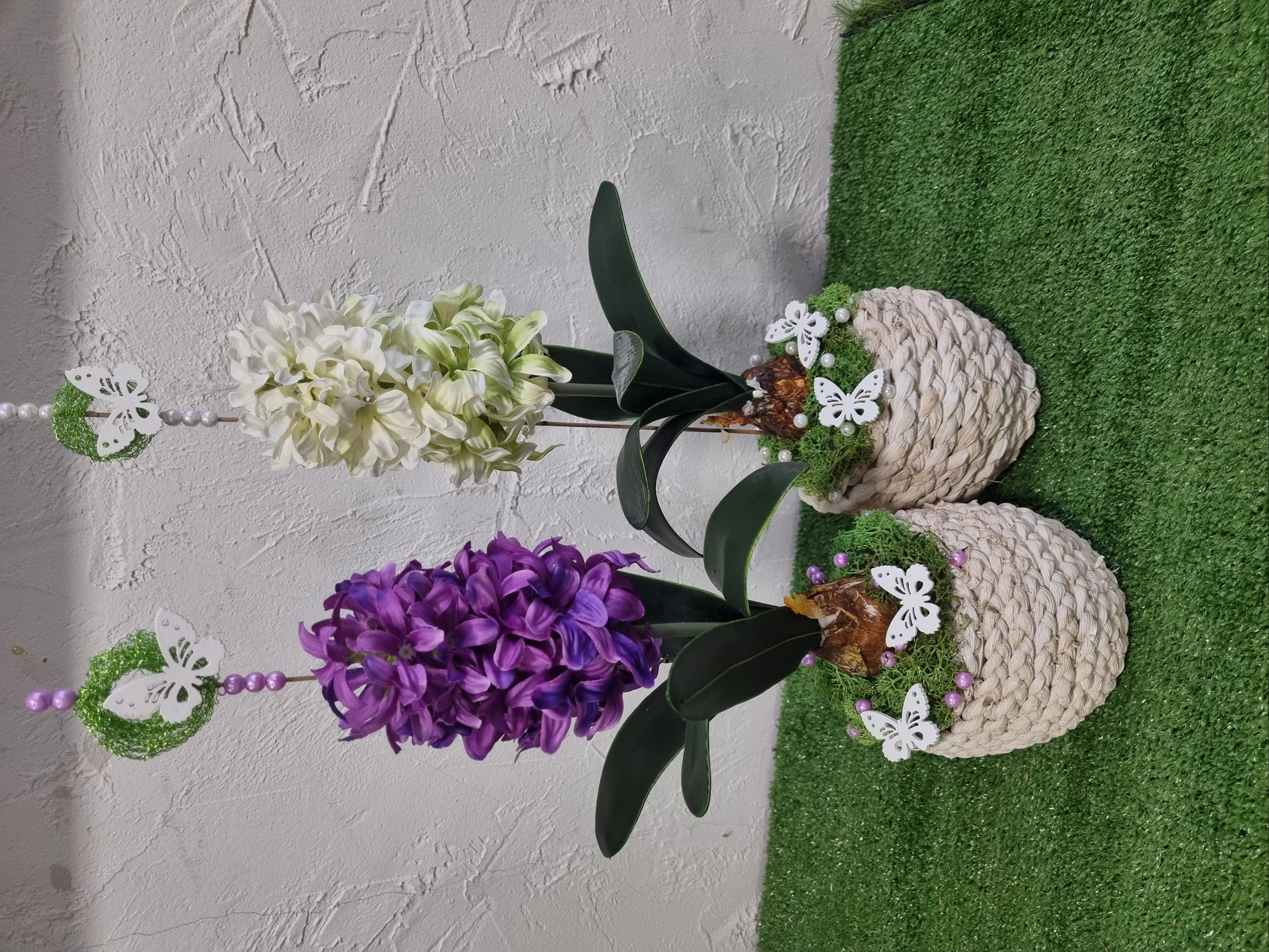 Zöld-rózsaszín asztaldísz selyemvirágból.