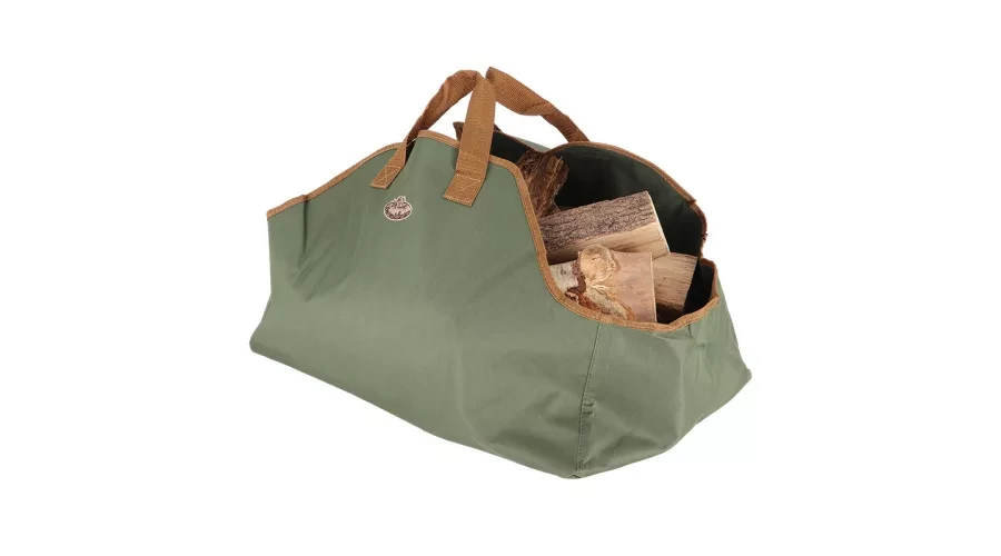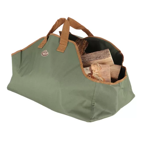 Nagy méretű, sötét zöld színű tűzifatartó és táska, amely lehetővé teszi, hogy kényelmesen hordjuk a tüzifát a kandallók vagy a kerti teraszfűtések mellé. Cipekedésre és tárolásra egyaránt praktikusan alkalmazható.