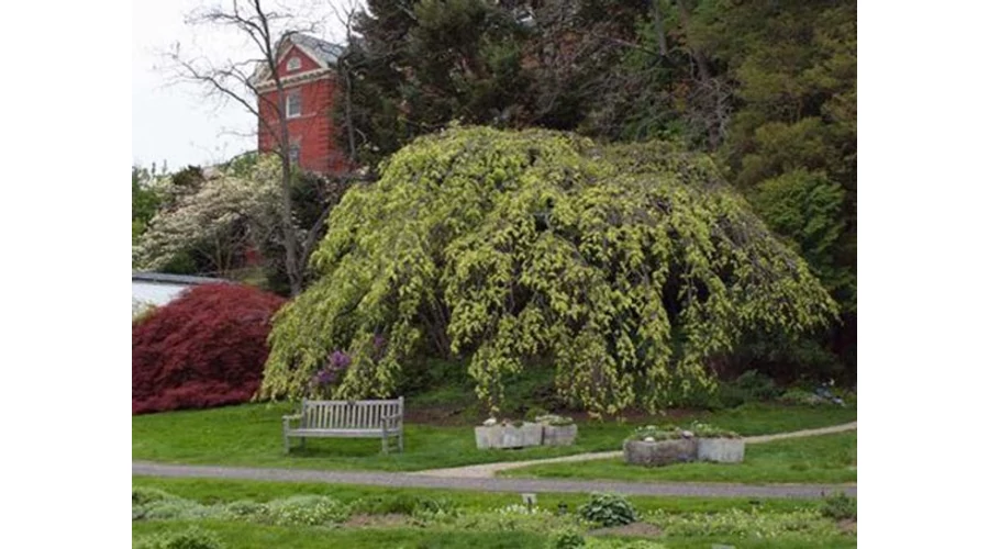 Kis termetű, lassú növekedésű, csüngő ágrendszerű fa, 180 cm magas törzsre oltva.