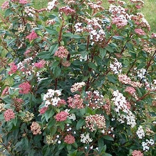 Viburnum tinus ‘Gwenlian’ – téli bangita – késő őszi téli virágzása miatt különleges figyelmet szenteljünk neki. Virágai már február végén nyílnak, egészen március végéig. A virágok bimbós állapotban sötét rózsaszínűek, kinyílva fehérek.