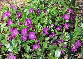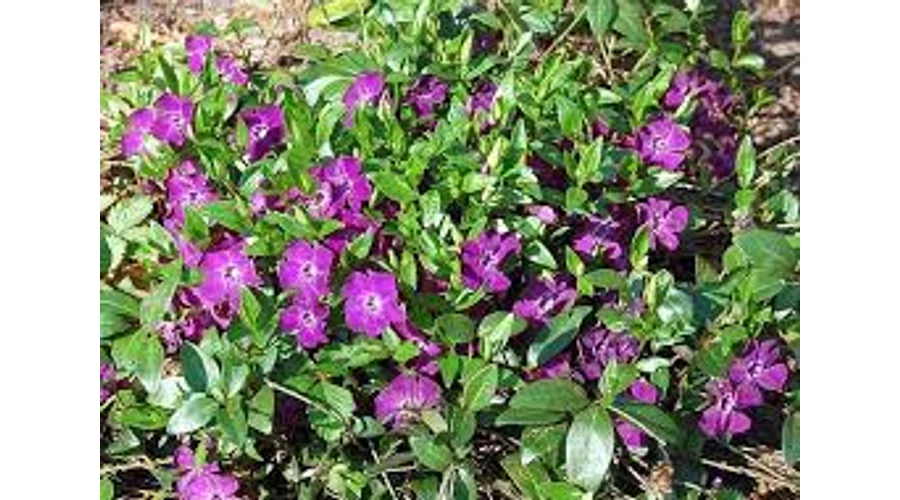 Az ‘Atropurpurea’ fajta az alapfaj egy természetes színváltozata (színmutációja), melyet Robert Sweet brit botanikus és kertész írt le. A híres Hortus Britannicus című művében rögzítette a növény adatait 1826-ban. Alacsony növekedésű, örökzöld talajtakaró évelő. Hosszú, indaszerű hajtásai a talajon futnak, és ahol a szárcsomók (nóduszok) a földhöz érnek, ott legyökeresednek. Így alkot idővel áthatolhatatlan, sűrű szőnyeget. Levelei bőrneműek, fényes sötétzöldek, elliptikus alakúak. Virágai magányosan állnak, öt szirmúak, lapos tölcsér formájúak, kontrasztos sötétlila színűek. Fő virágzása tavasszal van, de kora ősztől gyakran hoz egy szórványos másodvirágzást. Termése ritkán fejlődik, jelentéktelen.