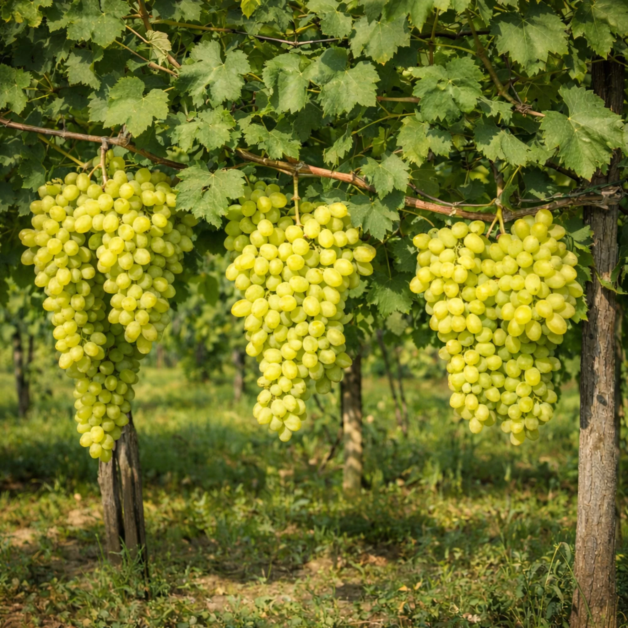 Gyümölcs jellemzése: Fürtjei közepesen nagyok (250-350 g), hengeres-kúposak, kissé tömöttek. Bogyói nagyok, oválisak, zöldessárgák, napos oldalról aranysárgára színeződnek. Héjuk középerős, húsuk ropogós, zamatos, kellemesen édes, magvakat nem tartalmaz. Kitűnő szállíthatósága miatt közkedvelt piaci csemegeszőlő. A fürtök sokáig a tőkén tarthatók.