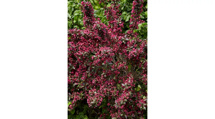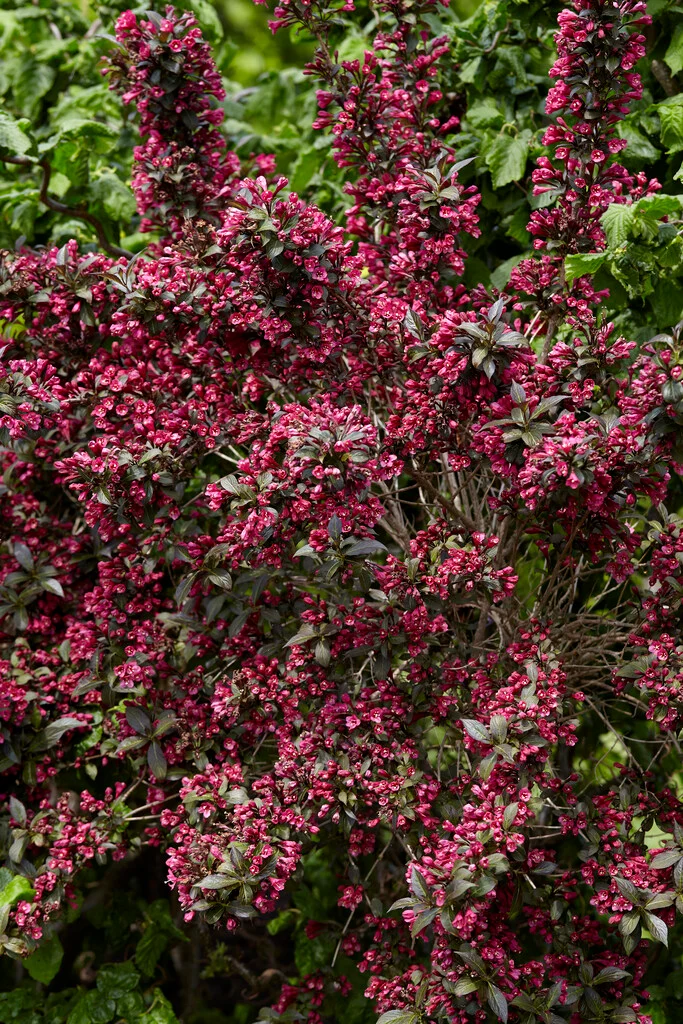 - Virágzat: Késő tavasszal (május-június) hozza élénkrózsaszín, tölcséres virágait, amelyek drámai kontrasztot alkotnak a sötét levelekkel.