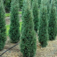 A ’Blue Jeans’ fajtát Pieter van den Dool nemesítette 1996-ban waddinxsveeni (Hollandia) faiskolájában. 2009-ben a boskoopi Plantarium kiállításon aranyérmet kapott. Az alapfajnál lassúbb növekedésű, de kompaktabb megjelenésű, sűrű, merev, felálló ágrendszerű, oszlopos alakú. Dús lombját alkotó puha, szorosan a hajtások mellett növő pikkelylevelei tömörek, zöld alapon enyhén kékes árnyalatúak, megdörzsölve nem olyan erős illatúak, mint az alapfajé. Végmagassága 4-6 m.