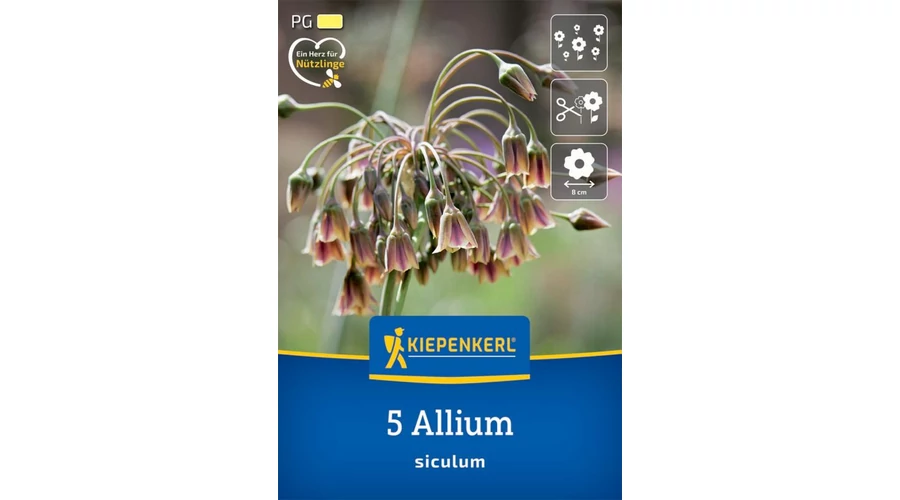 Ezt a díszhagymát jellegzetes virágai jellemzik, amelyek sűrű fürtben helyezkednek el körülbelül 100 centiméter magas szárakon. Minden harang alakú virágra több színárnyalat jellemző, amelyek a virágzás során a borvörös, barnás és krémszínűtől a tompa zöld, lila és karamellbarna színig változnak.